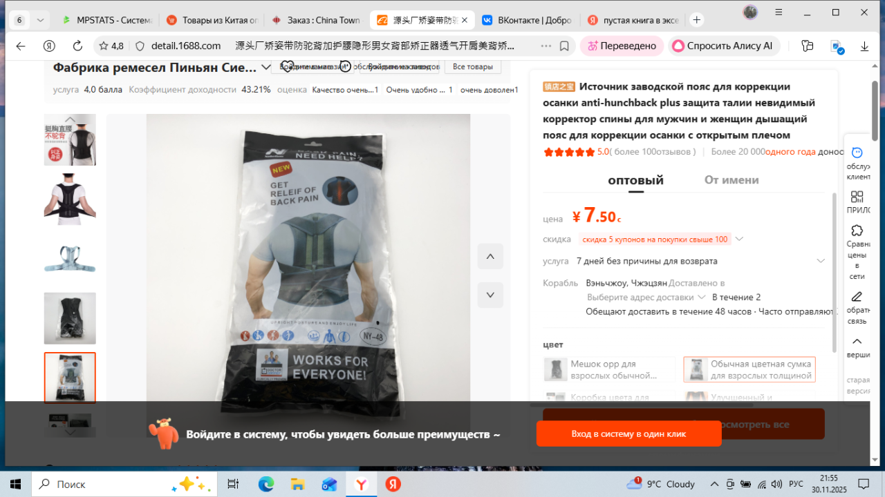 Начала работать с компанией China Towns несколько месяцев назад, за время нашего сотрудничества у меня только положительные отзывы о всей команде. Работают профессионалы. Все выкупы были в срок, доставка очень быстрая, всегда приходил товар раньше...